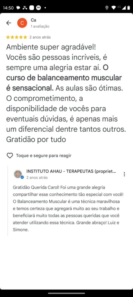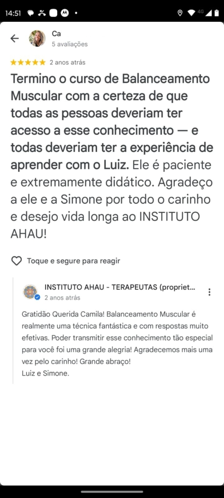 - Ministra cursos de Balanceamento Muscular® (Kinesiology).
